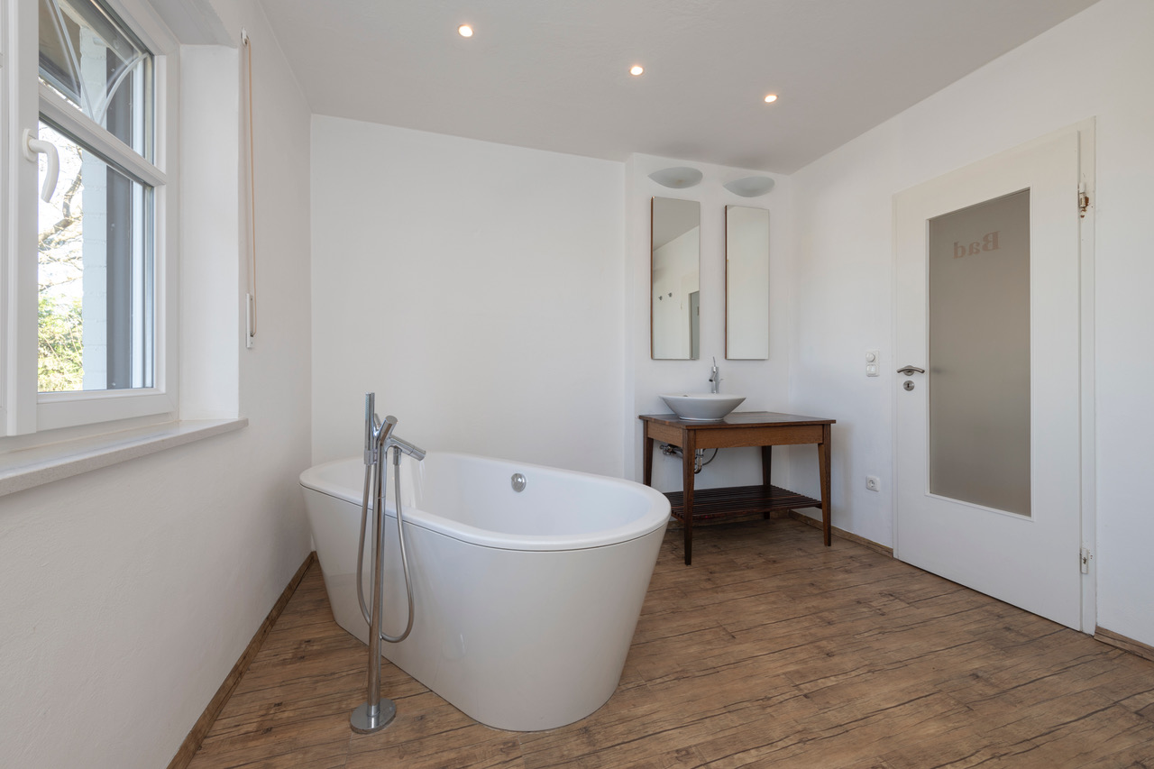 Vollholzparkett, eine stilvolle Badelandschaft sowie eine voll ausgestattete Einbauküche zählen zur hochwertigen Sonderausstattung dieses Hauses.