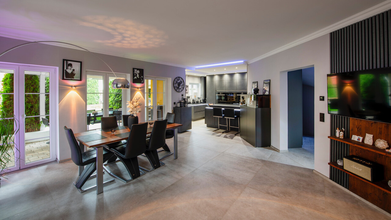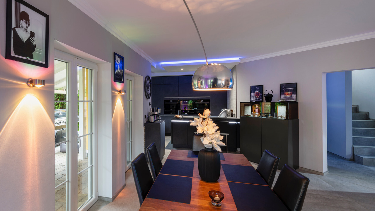 Nicht zuletzt ist das gesamte Haus mit einem Smart System ausgestattet, mit welchem sich die gesamte Hauselektrik sowie das Lichtsystem und die LED Anlagen extern steuern lassen.