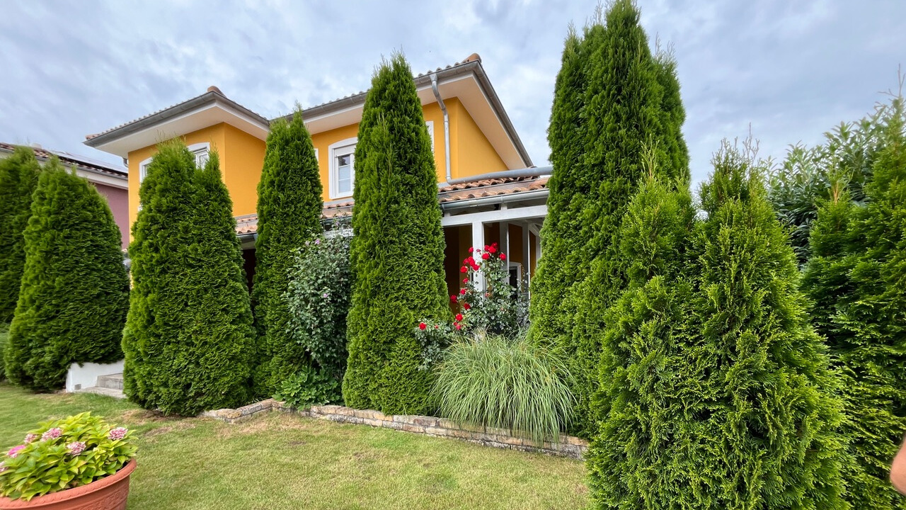 Das im Jahr 2006 erbaute Anwesen zeigt sich in einem konsequent mediterranen Baustil und wurde in den letzten Jahren durch seinen neuen Besitzer  innen sowie auch außen neu gestaltet.