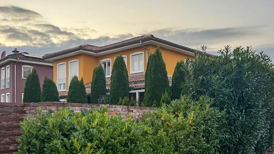 Der Garten ist ebenso konsequent mit südländisch anmutenden Zypressen angelegt, weitere kleine Nebengebäude sind architektonisch gut eingepasst.