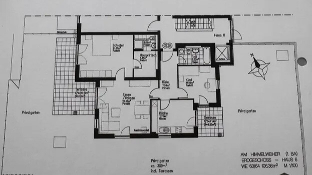 Der 302 m² große Garten geht rings um die Wohnung, und der Nutzwert ist umso größer, da der Garten direkt in den Park übergeht. So eine Lage ist ein Premium und fast nicht zu finden.